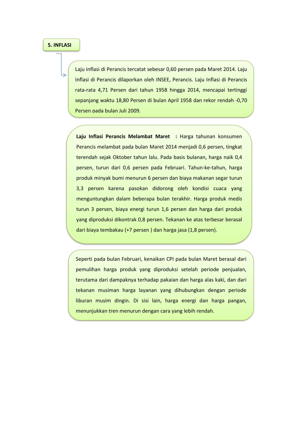 Perancis tercatat sebesar 0,60 persen pada Maret 2014. Laju Inflasi di Perancis